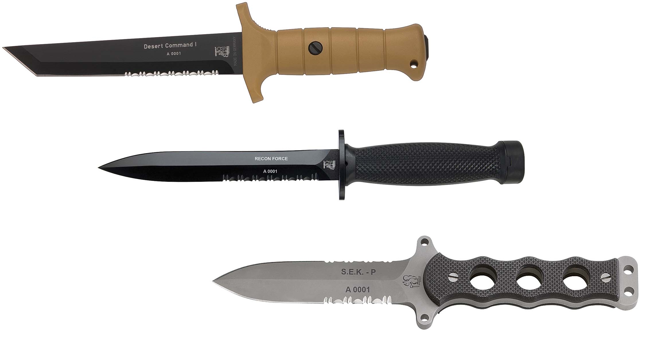 Kompromisslos tritt die Walther Mach Tac 2 auf, die mit ihren Designelementen polarisieren und nicht nur Messerkenner in ihren Bann ziehen. Die außergewöhnlich stark dimensionierten Klingen sind aus 440er Stahl und durch ihre Beschichtung sehr unempfindlich, so wie Macheten mit hohem Gebrauchswert sein sollen.