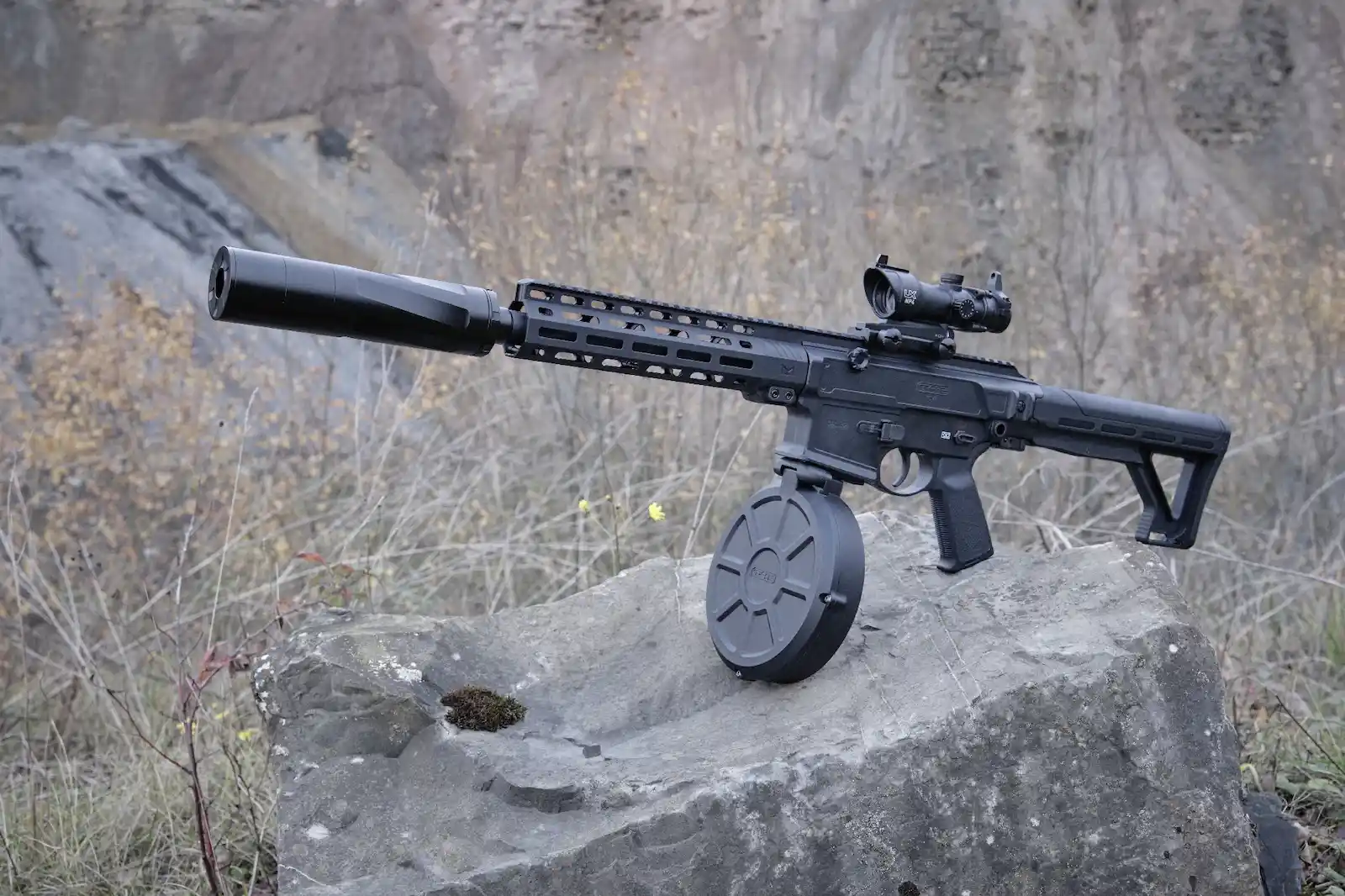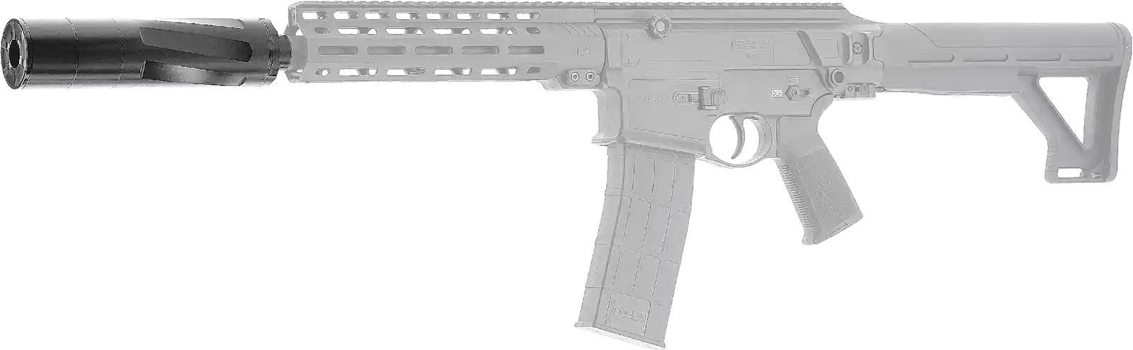 Das robuste Aluminiumgehäuse sorgt für hohe Stabilität und langlebige Nutzung auch bei intensivem Training. Dank des Mündungsgewindes M22x1,5 ist der Aufsatz kompatibel mit vielen T4E-Markern im Kaliber .68.