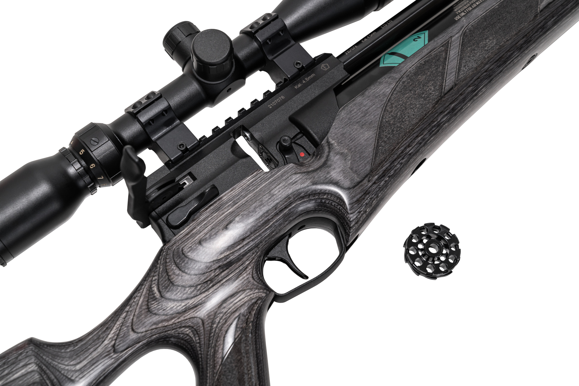Die Weihrauch HW110 T F ist ein hochwertiges Pressluftgewehr 4,5 mm mit elegantem Schichtholzschaft und richtet sich an ambitionierte Freizeitschützen sowie an Sportler, die auf Präzision und Langlebigkeit Wert legen. Die Kombination aus bewährter Technik und einem formstabilen Schichtholzschaft sorgt für hervorragende Schussstabilität, komfortables Handling und eine ansprechende Optik.